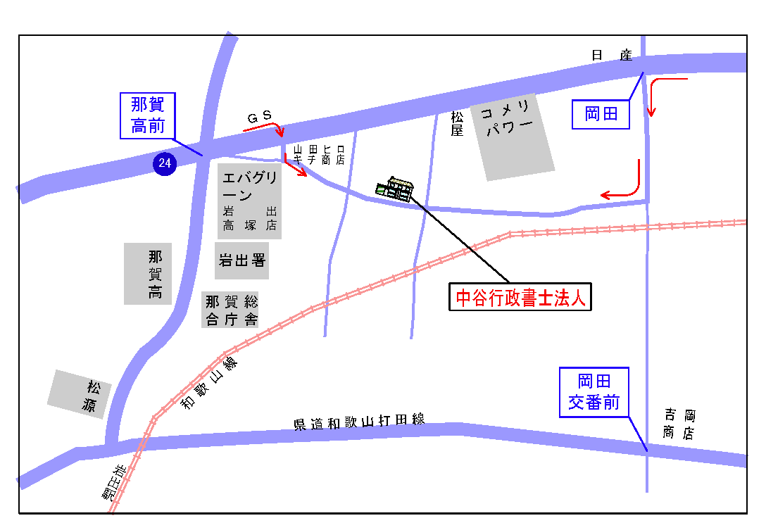 | アクセス | ◆鉄道でお越しの方 JR和歌山線・岩出駅徒歩10分 ◆車でお越しの方 ~粉河方面から~ 岩出バイパス24号線 ➧ パワー岩出店を左折 ➧ 一つ目の曲がり角を右折、200m直進 ~和歌山方面から~ 岩出バイパス24号線 ➧ 那賀高校前の交差点を通過 ➧ 一つ目の曲がり角を右折 ➧ すぐに左折し200m 直進 |